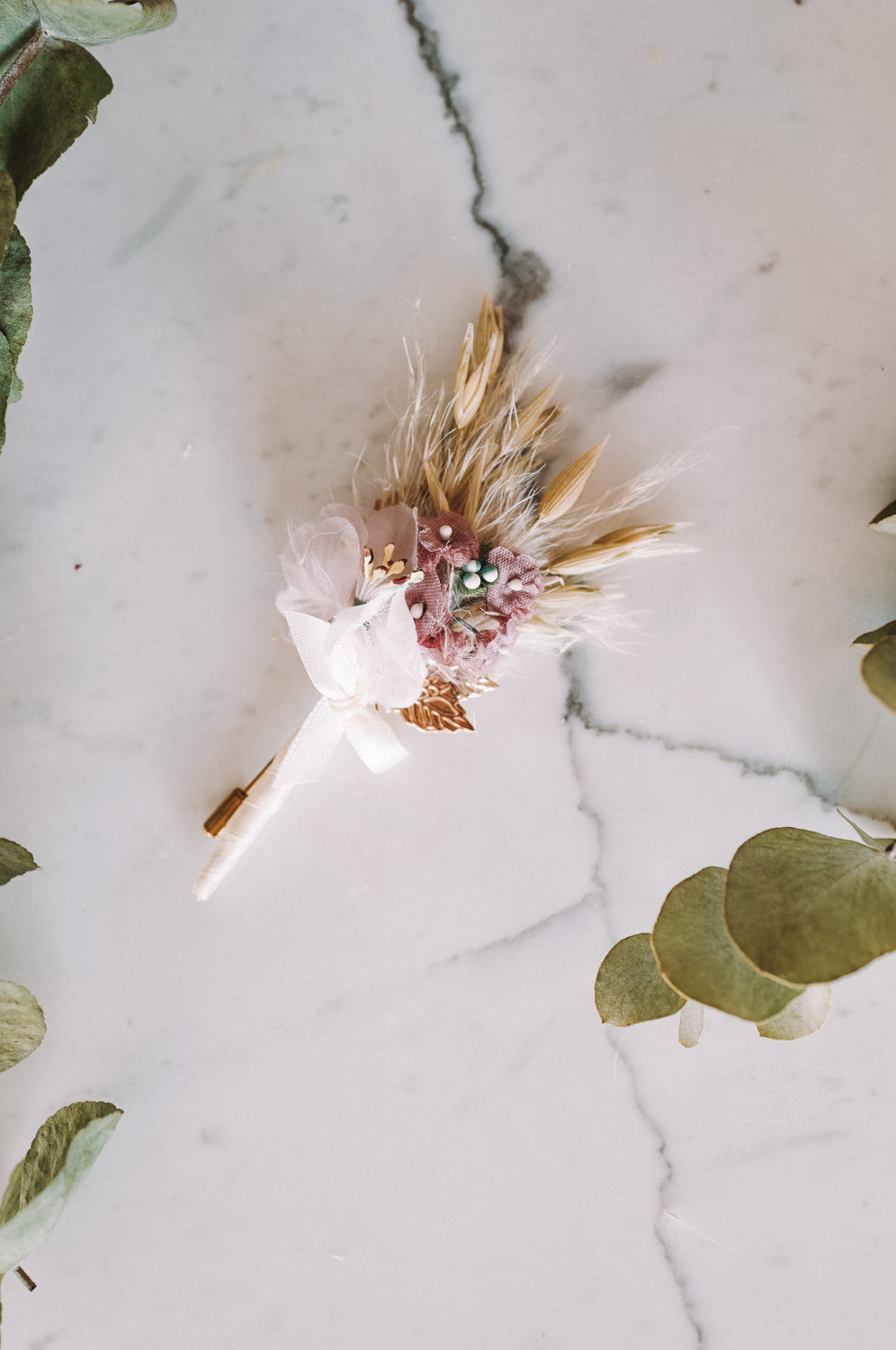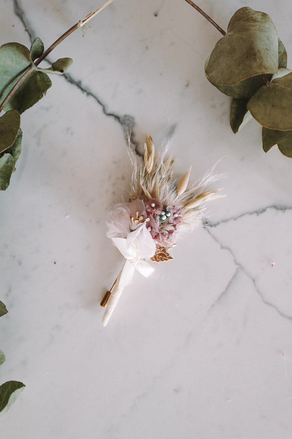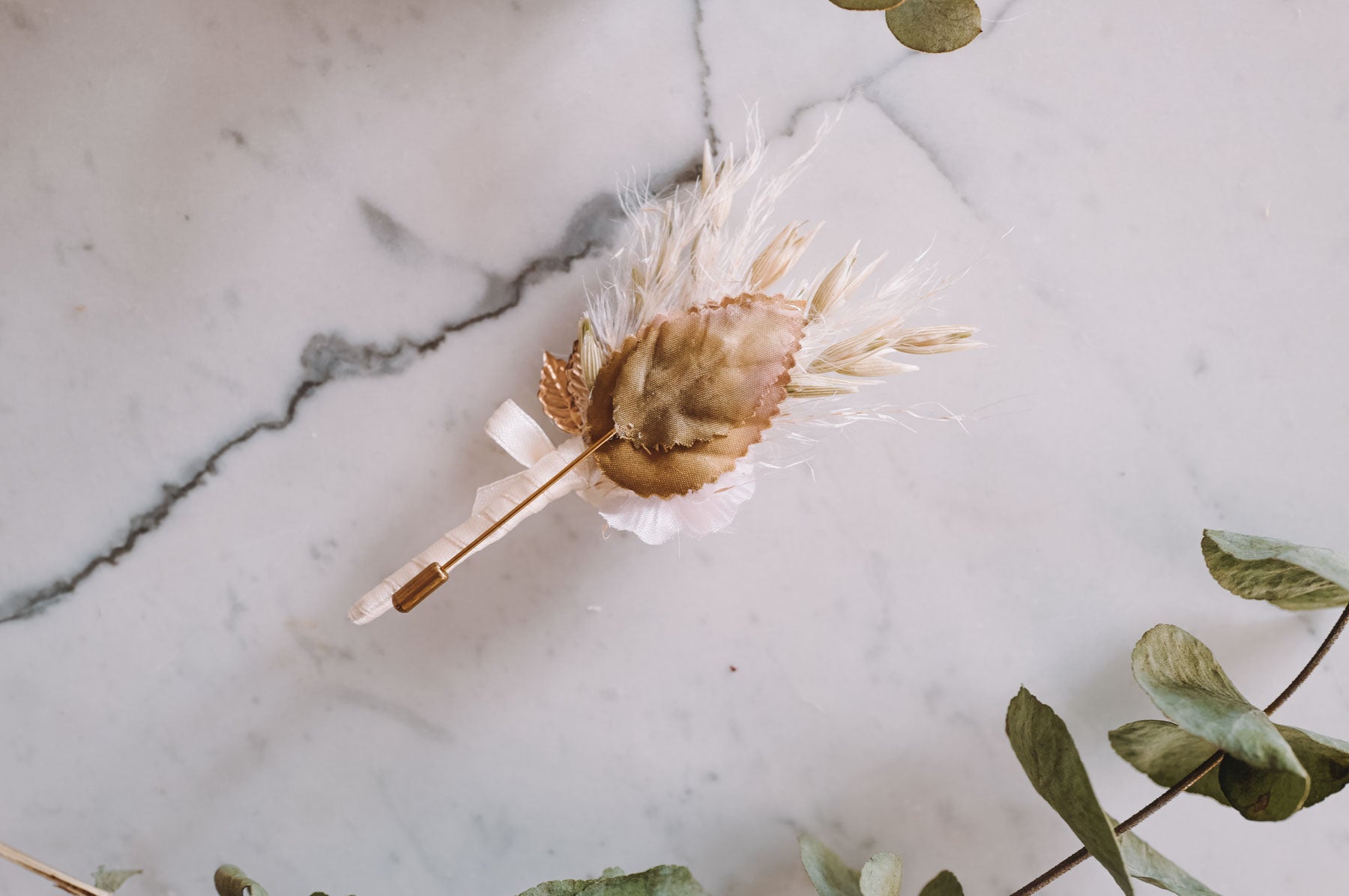 Salar is a delicate bouquet for the groom. Handmade in Vienna from precious vintage silk flowers and dried flowers, it will last a lifetime.