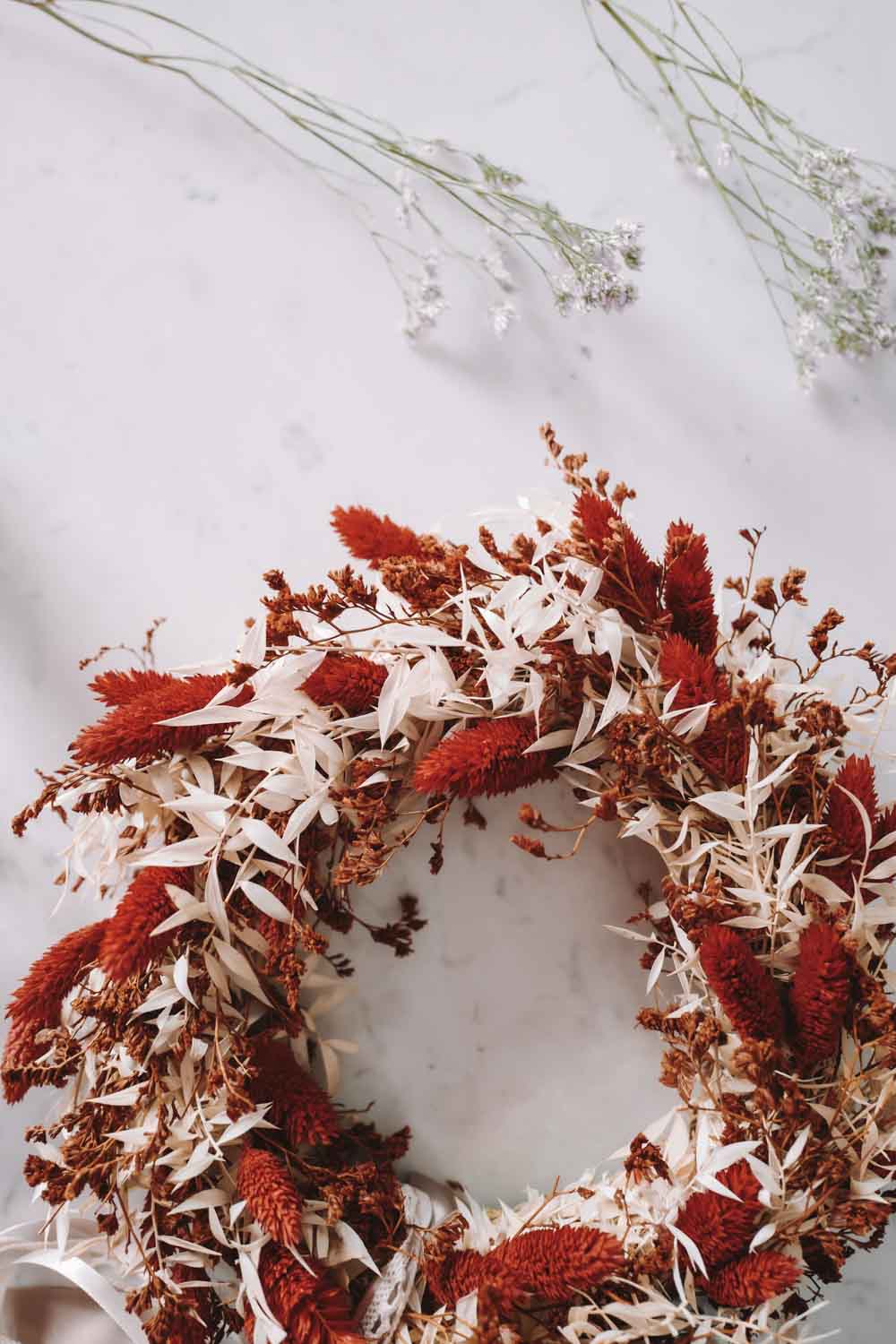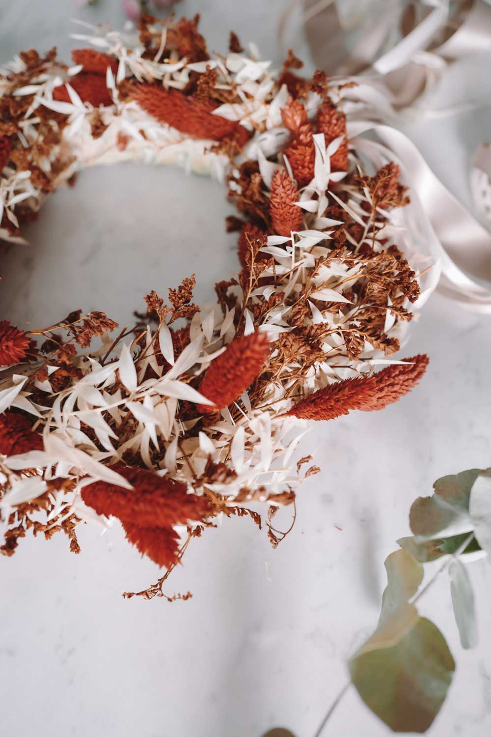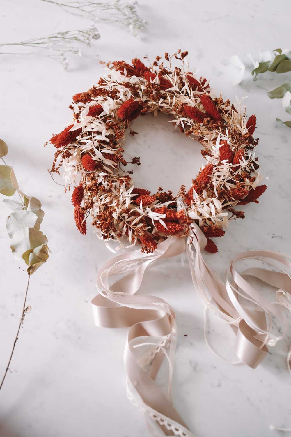 High-quality dried and preserved flowers, grasses and leaves form the Dried Flower Wreaths of the Viennese label "We Are Flowergirls". The hand-tied wreaths last a lifetime thanks to the precise tying method and high-quality materials. And they do so without any watering or care. They lose neither color nor shape and thus accompany you through many seasons. Whether as a door wreath, wall wreath or as an eye-catching floral decoration for the table.
