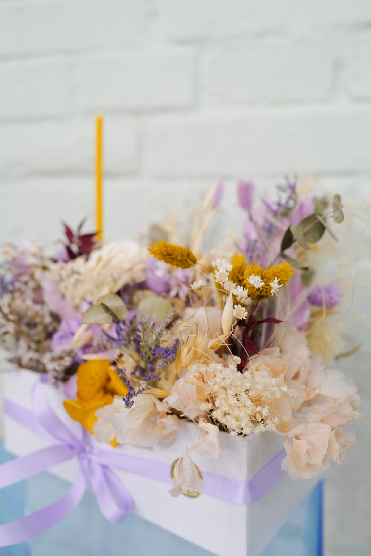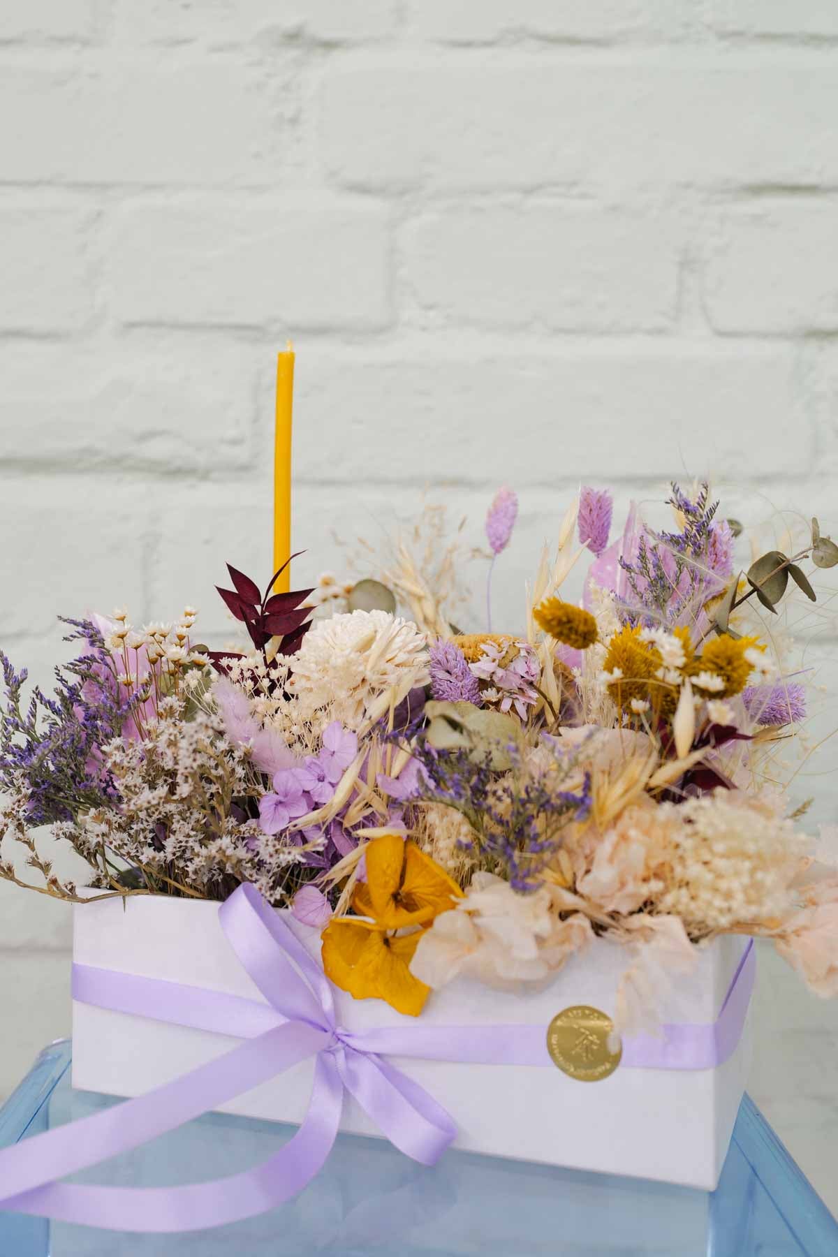 Unsere Dried Flower Boxen sind das perfekte Mitbringsel zum Geburtstag, Geschenk zum Valentinstag oder Home-Deko für dein eigenes Zuhause. Sie kommen mit einer langen Kerze. Unsere Blumenboxen werden von uns aus hochwertig getrockneten und konservierten Dried Flowers gefertigt und halten ein Leben lang. Sie sind die pflegeleichteste Dekoration für Zuhause und ein traumhaftes Geschenk wenn es mal einen Tick anders sein soll als ein klassischer Blumenstrauss.