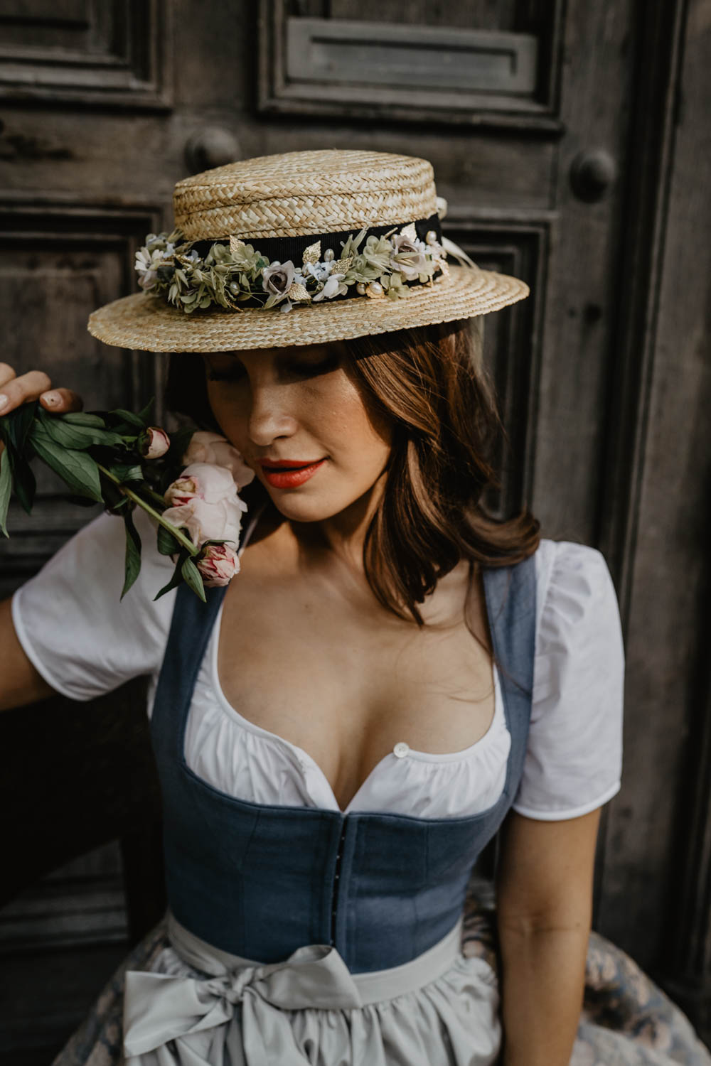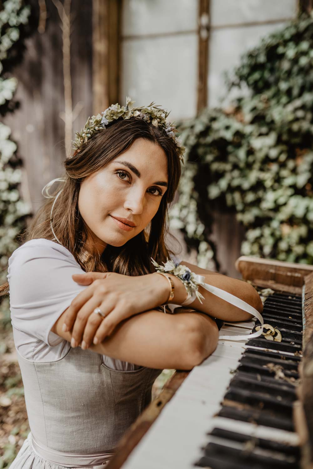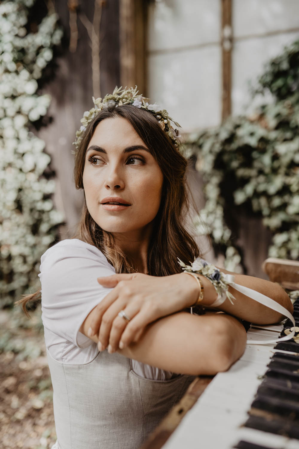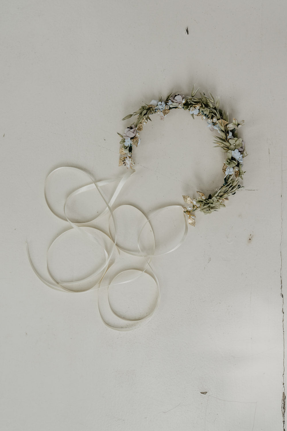 Headpiece Nina ist ein romantisches Haarband, das du direkt ins Haar flechten kannst oder aber auch um deine Hutkrempe binden kannst. Handgemacht in Wien aus Vintage Seidenblumen und Dried Flowers.