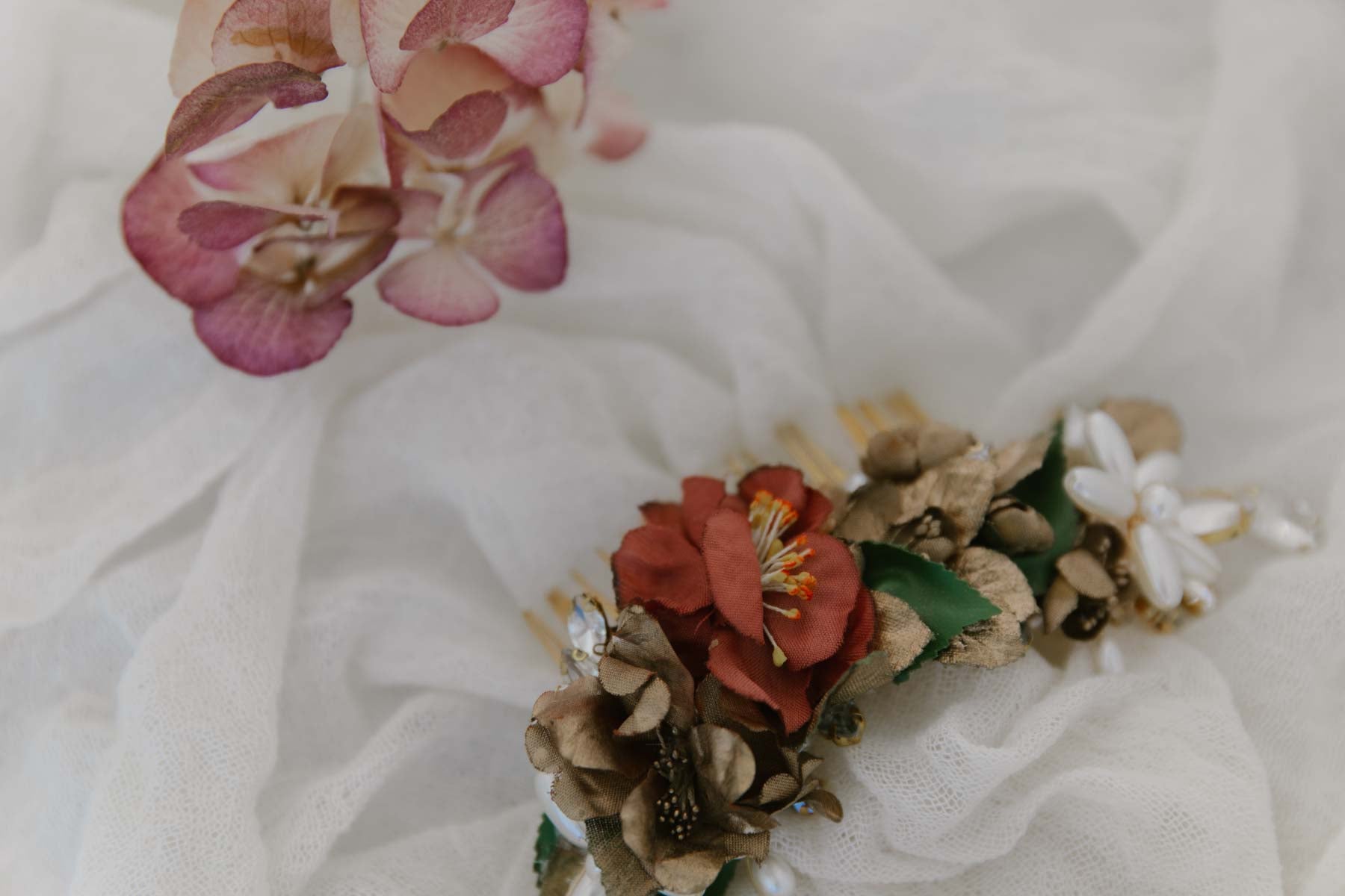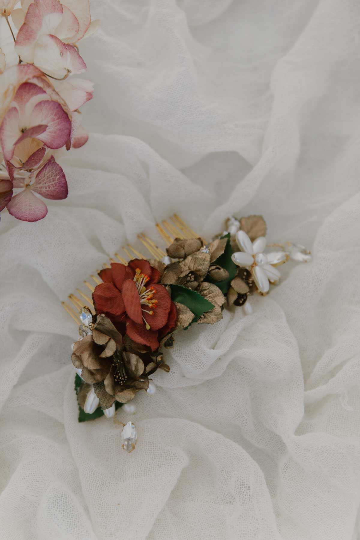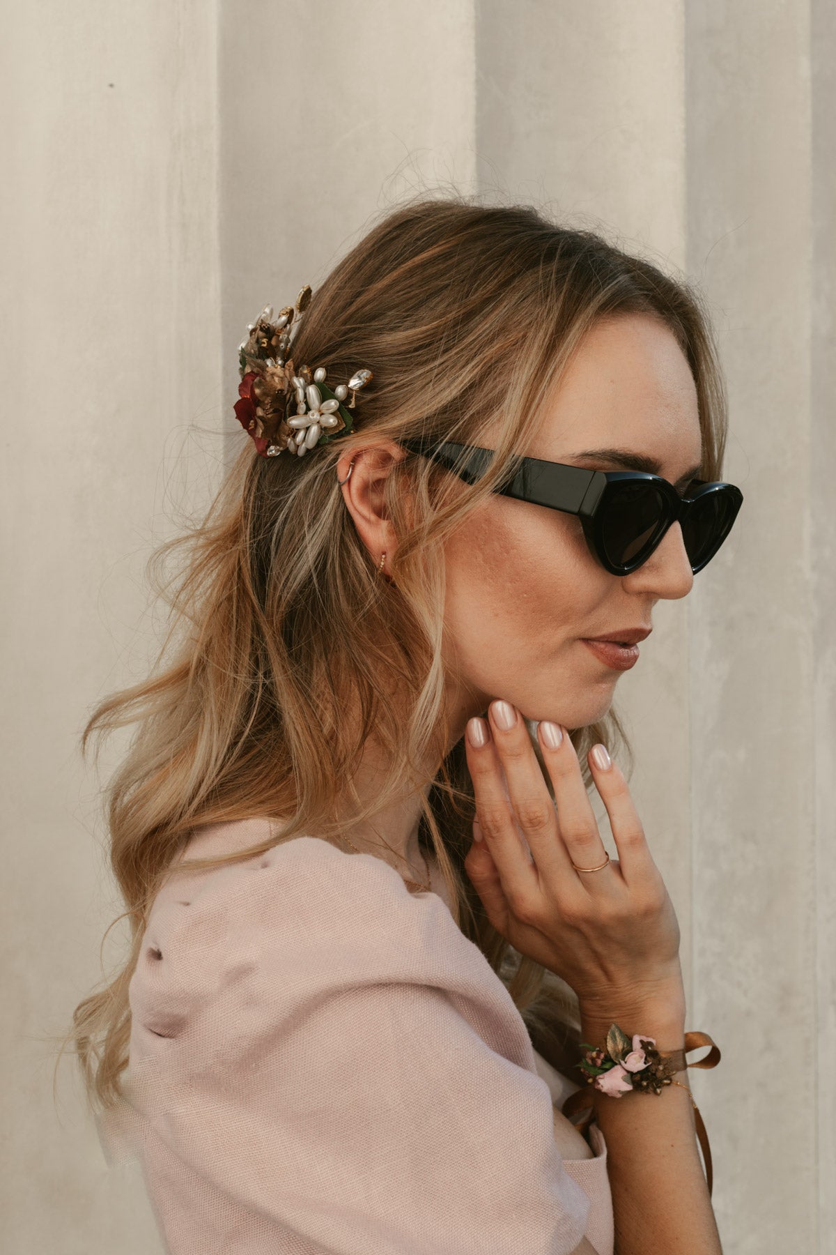 Helena ist das perfekte Statement-Piece für den romantischen Bridal- oder Trachten-Look. Handgemacht in Wien aus edlen Vintage Seidenblumen und hält so ein Leben lang. Ganz einfach zum Stecken ins Haar.