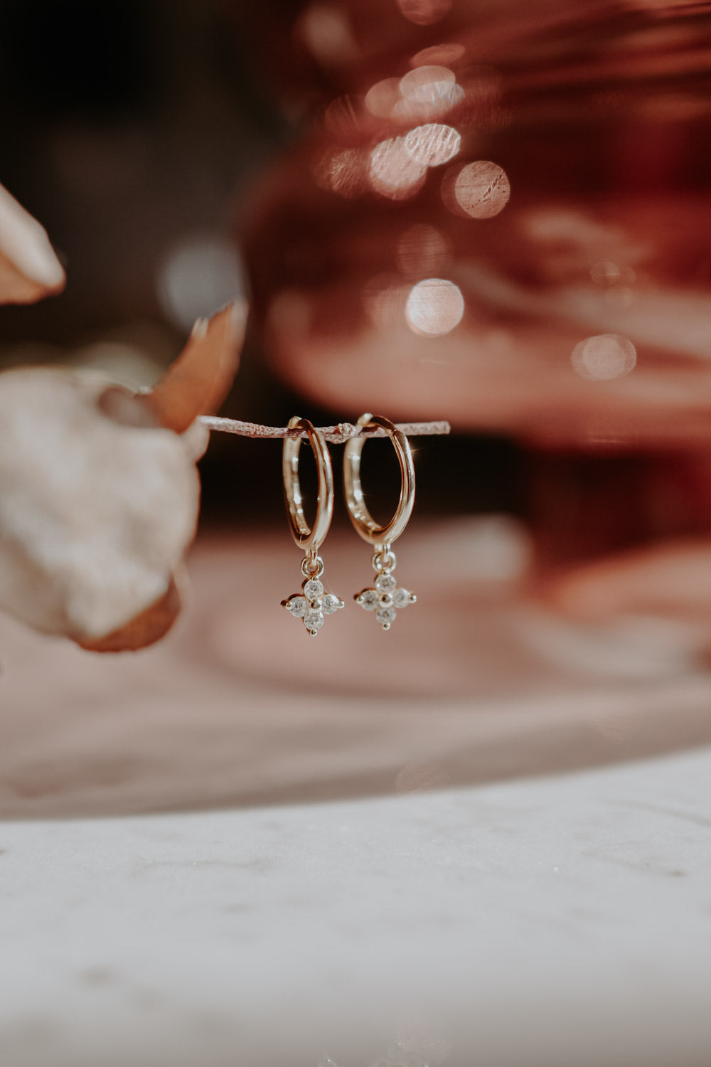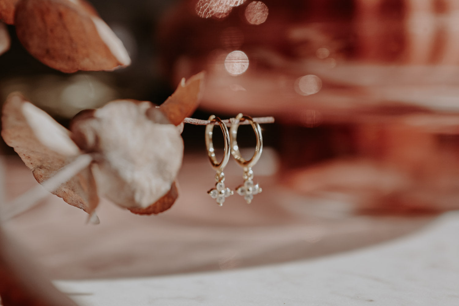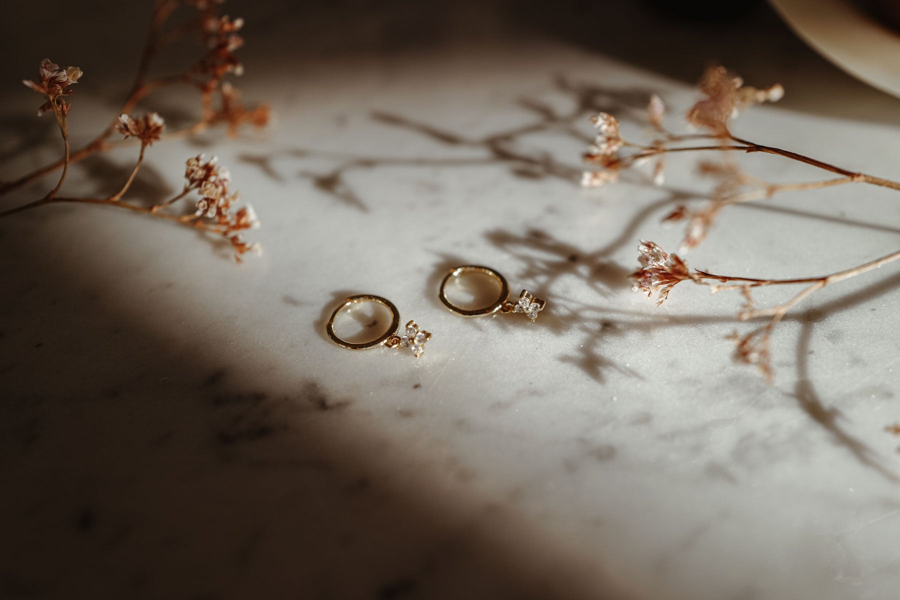 Our Bloom Hoops are part of our first Fine Jewelry Charity Collection. The delicate brass earrings, gold plated with 18k gold, each carry a small sparkling flower pendant.