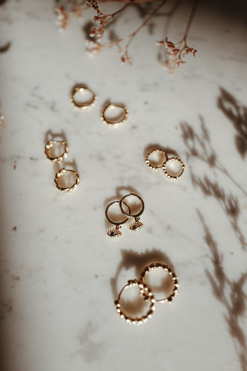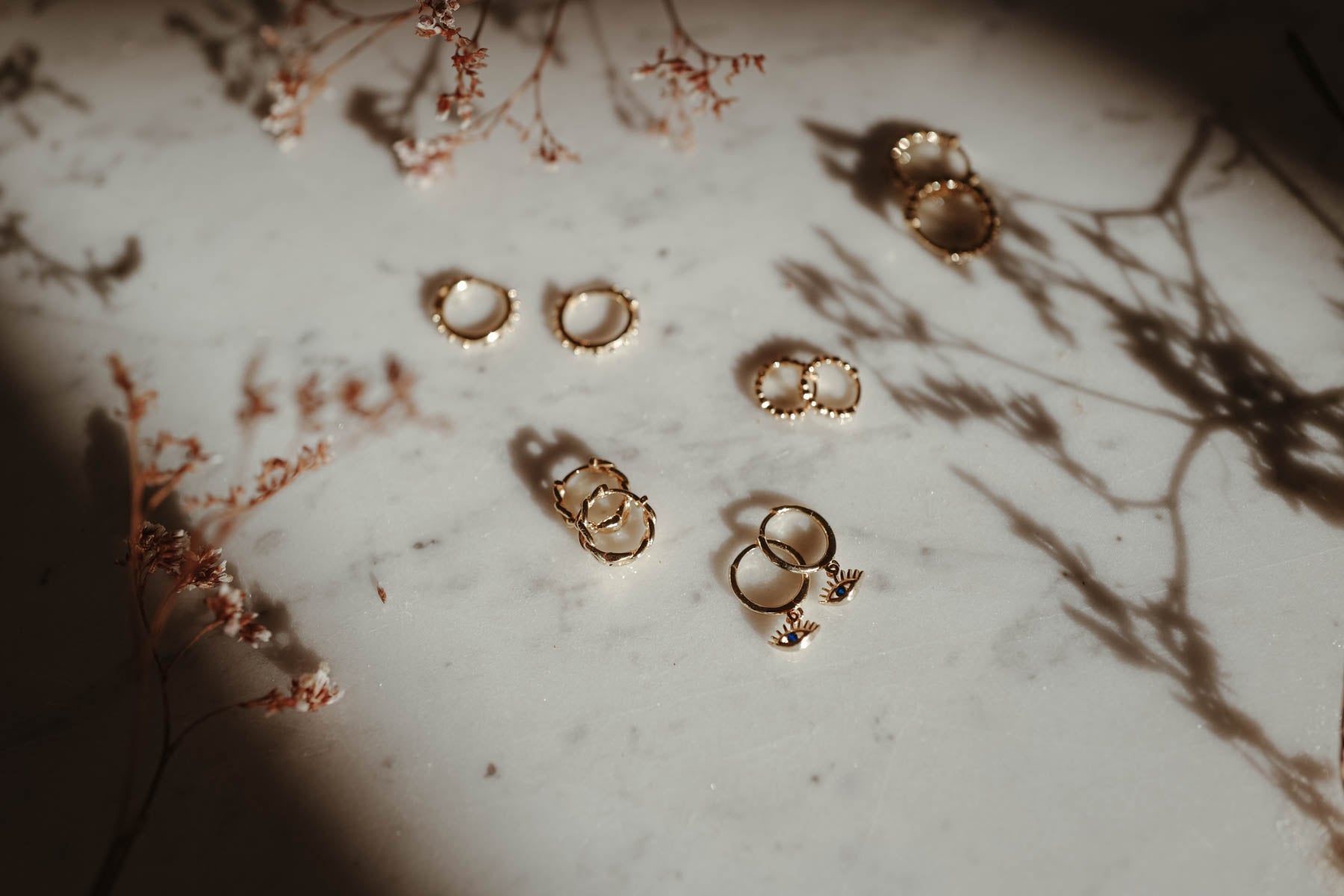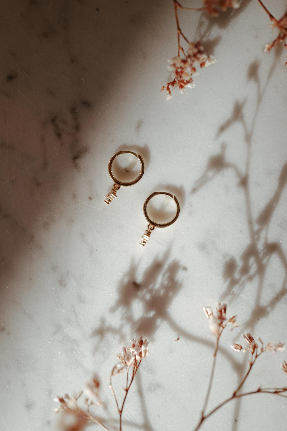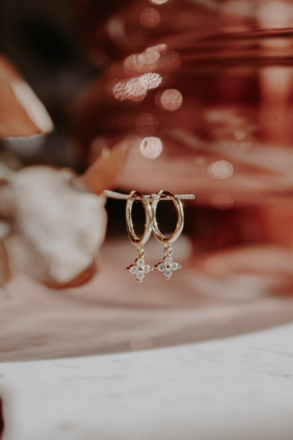 Our Bloom Hoops are part of our first Fine Jewelry Charity Collection. The delicate brass earrings, gold plated with 18k gold, each carry a small sparkling flower pendant.