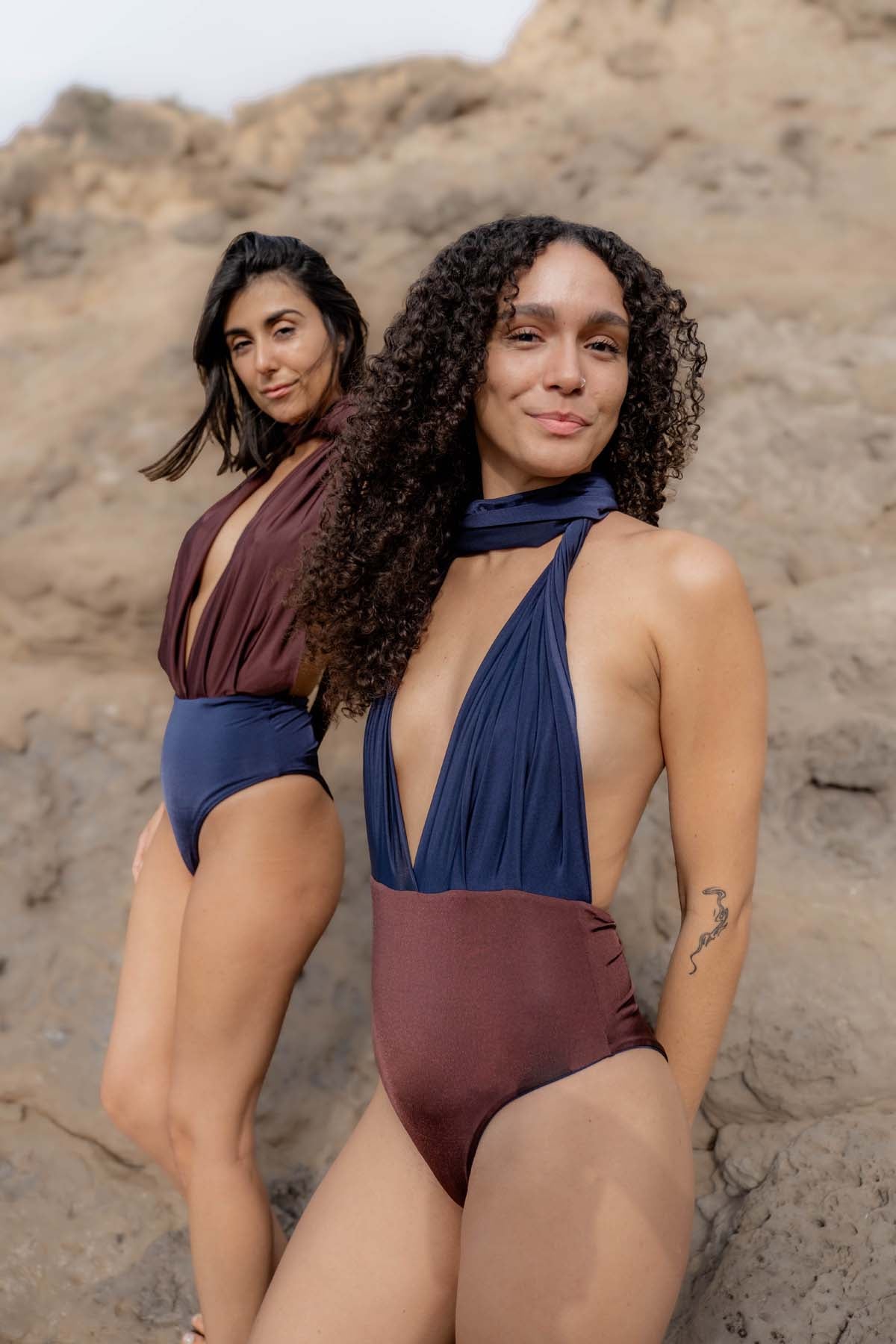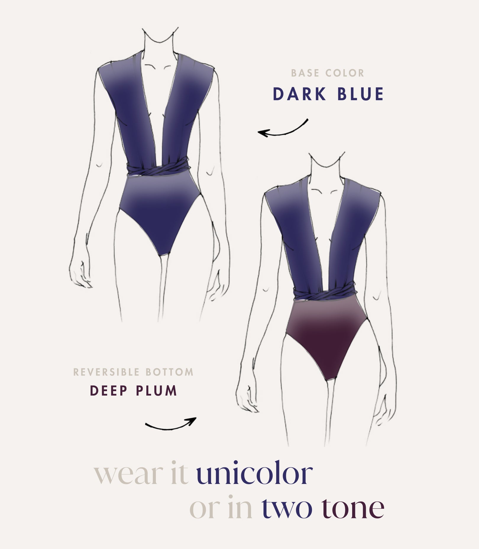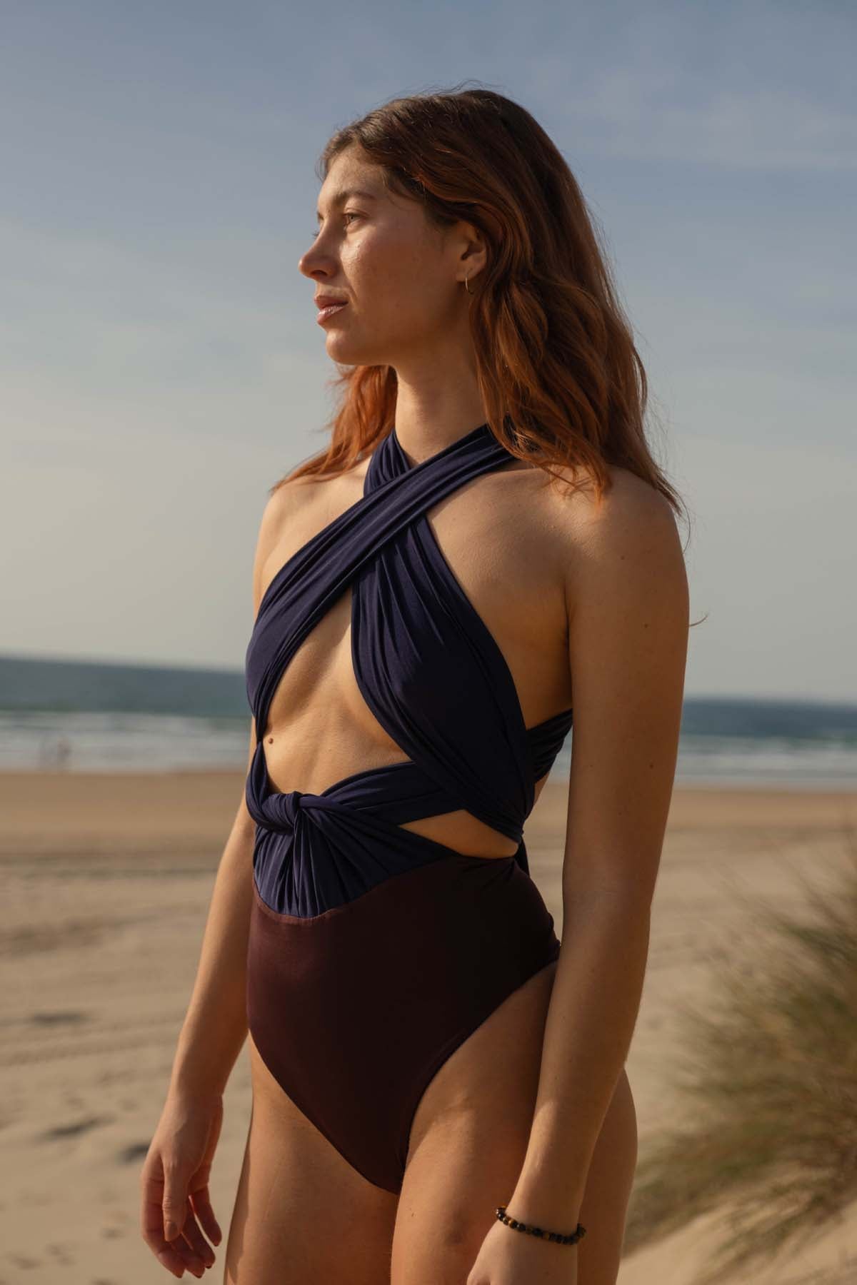 All swimsuits from The Dunes Collections are reversible swimsuits . This means you can wear them Unicolour or in Two-Tone. And you can tie it in 100 different ways. All info here: HOW TO WEAR