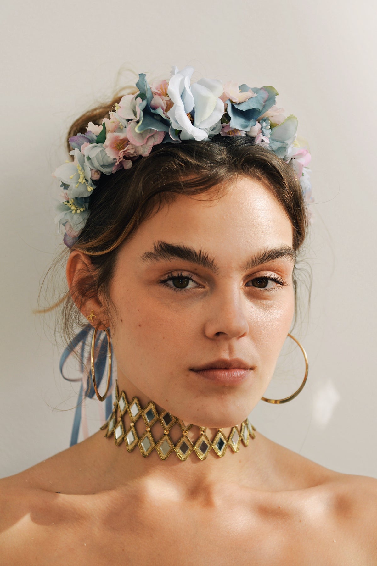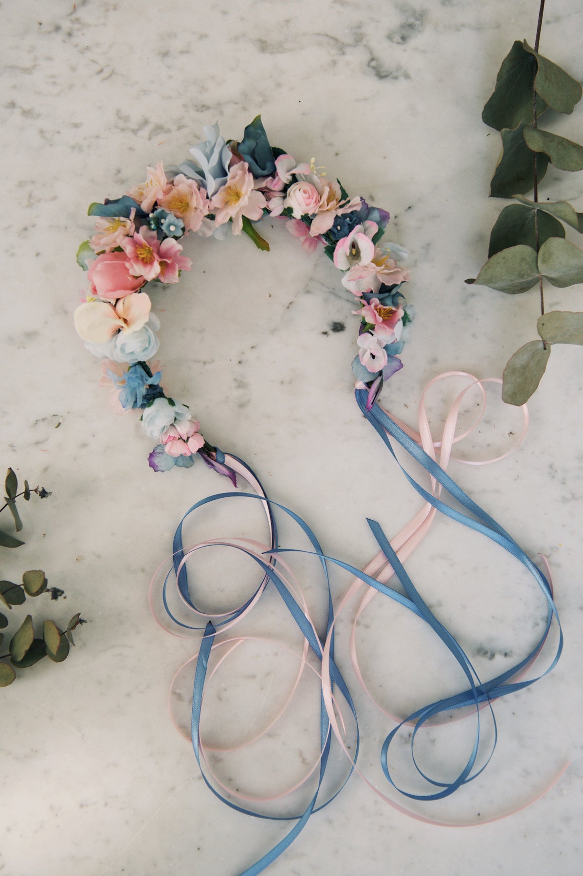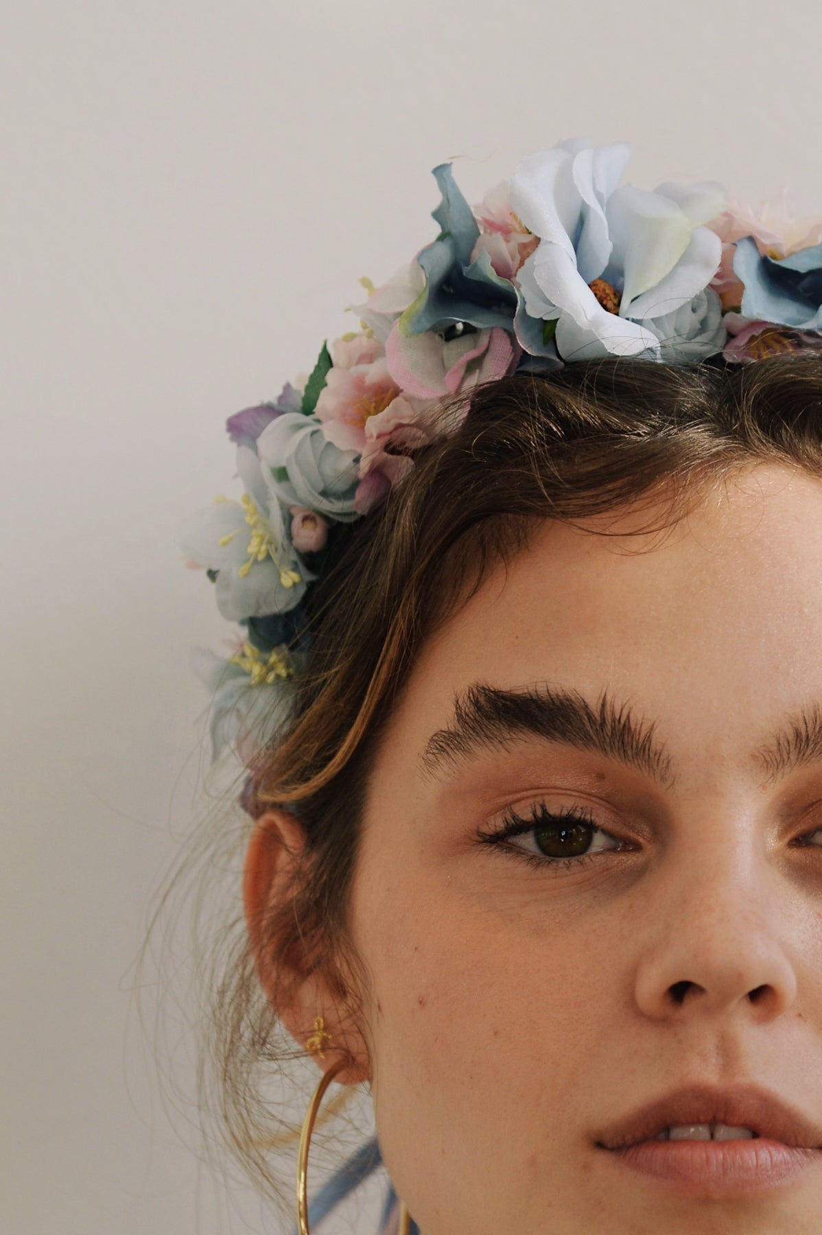 Flowercrown Anneliese ist eine romantische Blumenkrone für die Ewigkeit die niemals verblüht. Handgemacht in Wien aus Vintage Seidenblumen im Wiener Atelier von We Are Flowergirls.