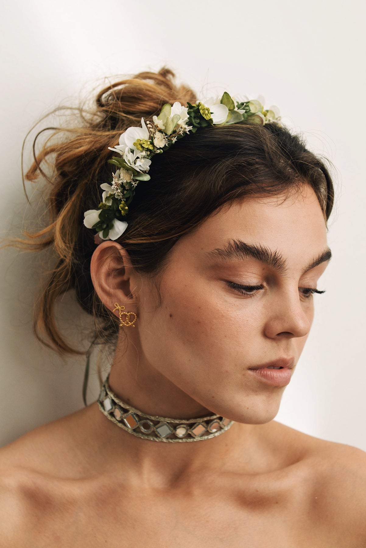 Flowercrown Olga ist eine romantische Blumenkrone für die Ewigkeit die niemals verblüht. Handgemacht in Wien aus Vintage Seidenblumen und getrockneten Real Flowers im Wiener Atelier von We Are Flowergirls.