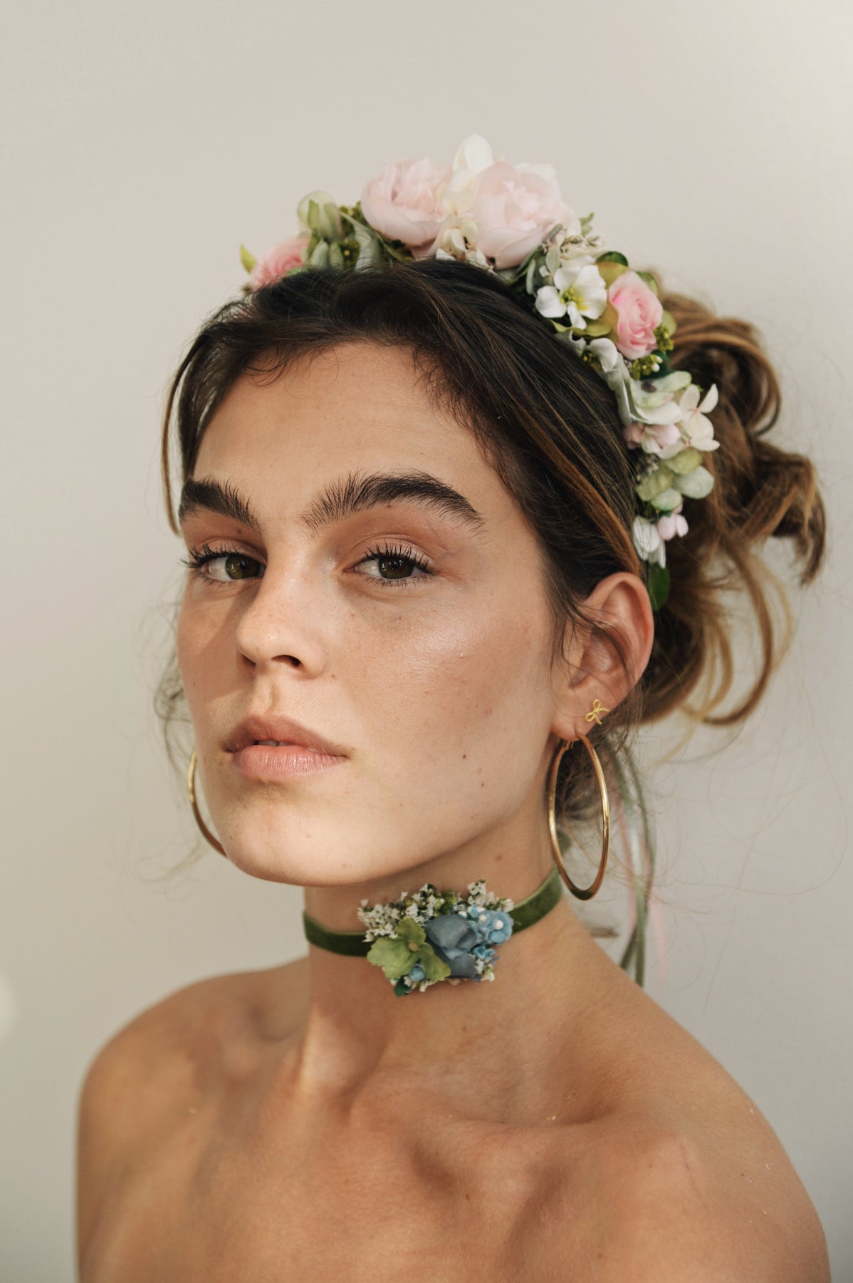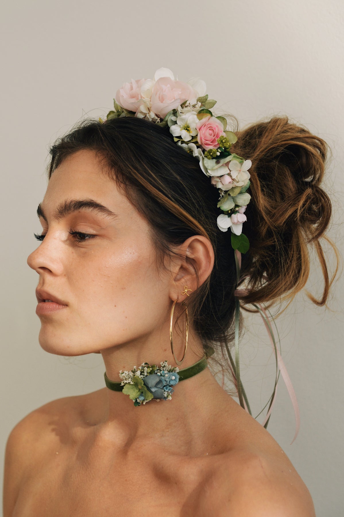 Flowerband Beatrice ist ein romantische Blumenband für die Ewigkeit das niemals verblüht. Handgemacht in Wien aus Vintage Seidenblumen im Wiener Atelier von We Are Flowergirls.