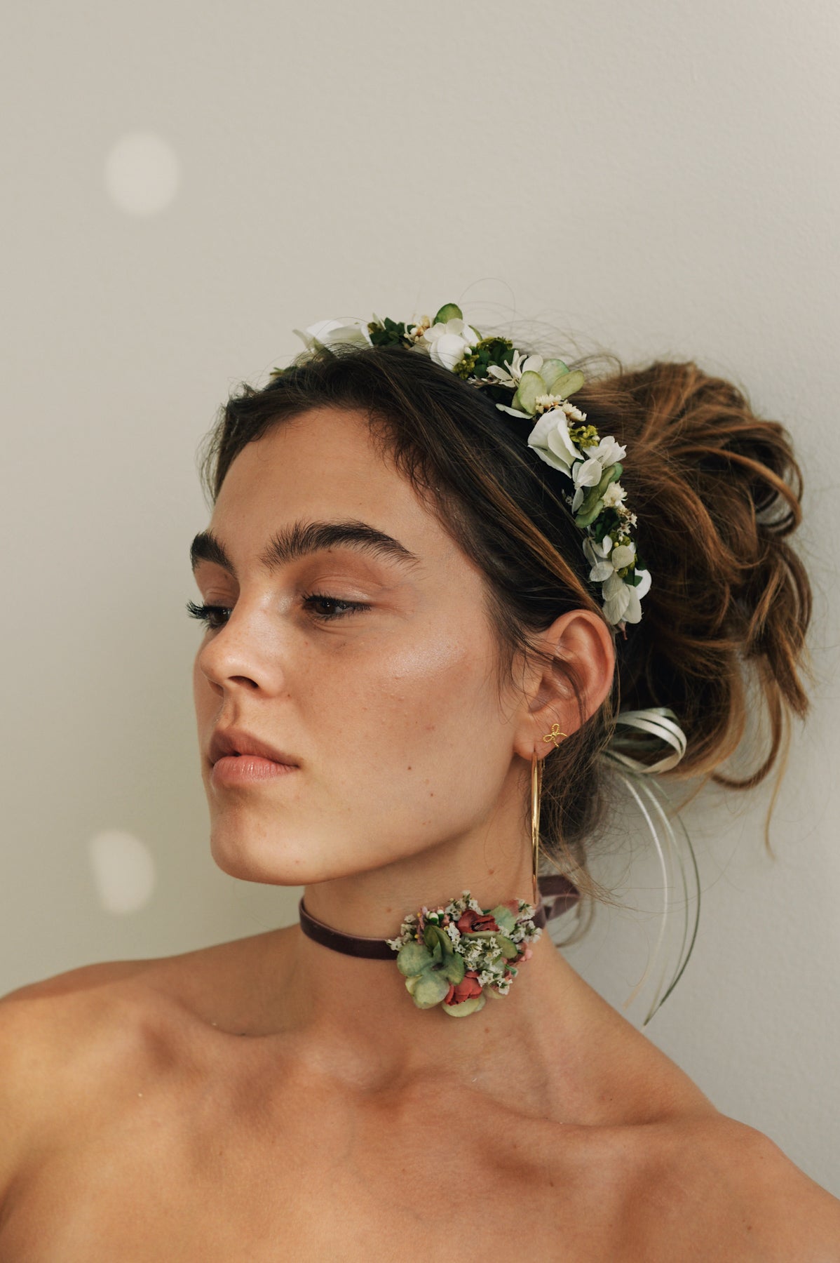 Flowerband Marianella ist ein romantisches Blumenband für die Ewigkeit das niemals verblüht. Handgemacht in Wien aus Vintage Seidenblumen im Wiener Atelier von We Are Flowergirls.