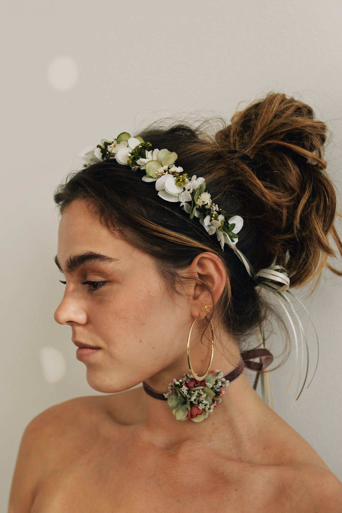 Blumenband kann verschieden verwendet werden. Als Armband, Dutt Band, um den Hals gewickelt, oder vieles mehr.