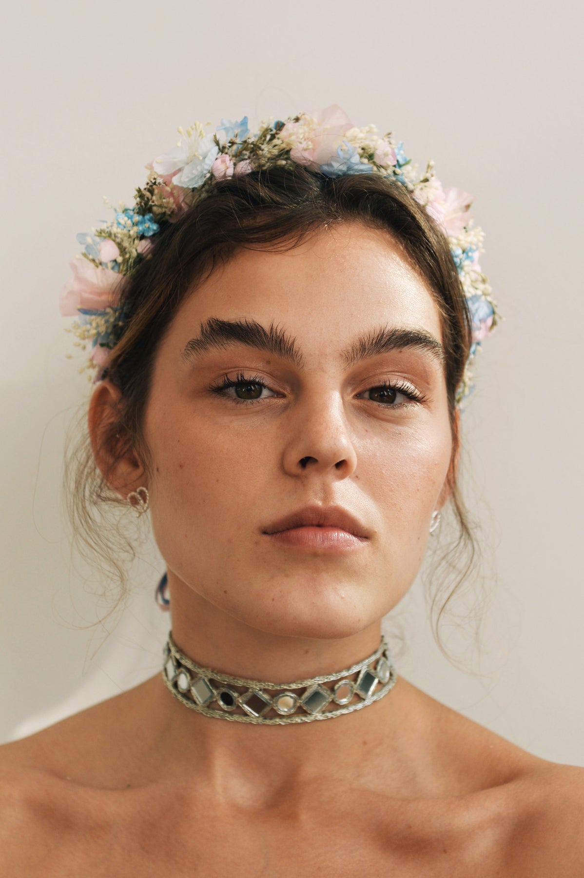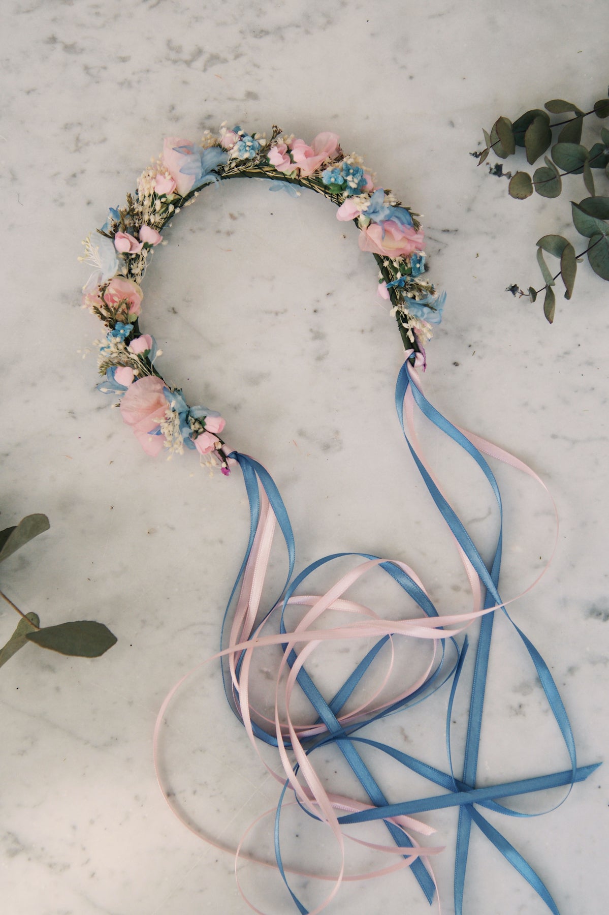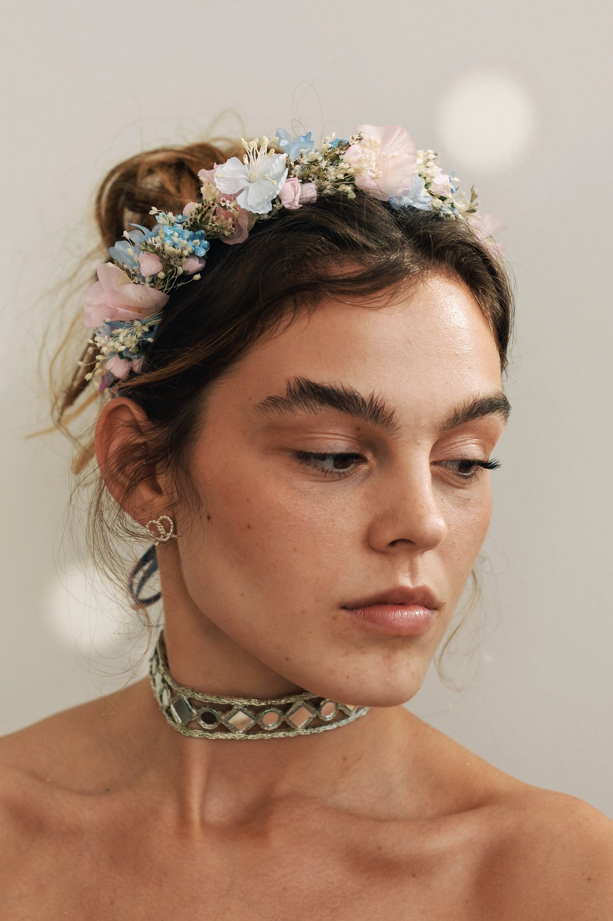 Flowercrown Erika ist eine romantische Blumenkrone für die Ewigkeit die niemals verblüht. Handgemacht in Wien aus Vintage Seidenblumen im Wiener Atelier von We Are Flowergirls.