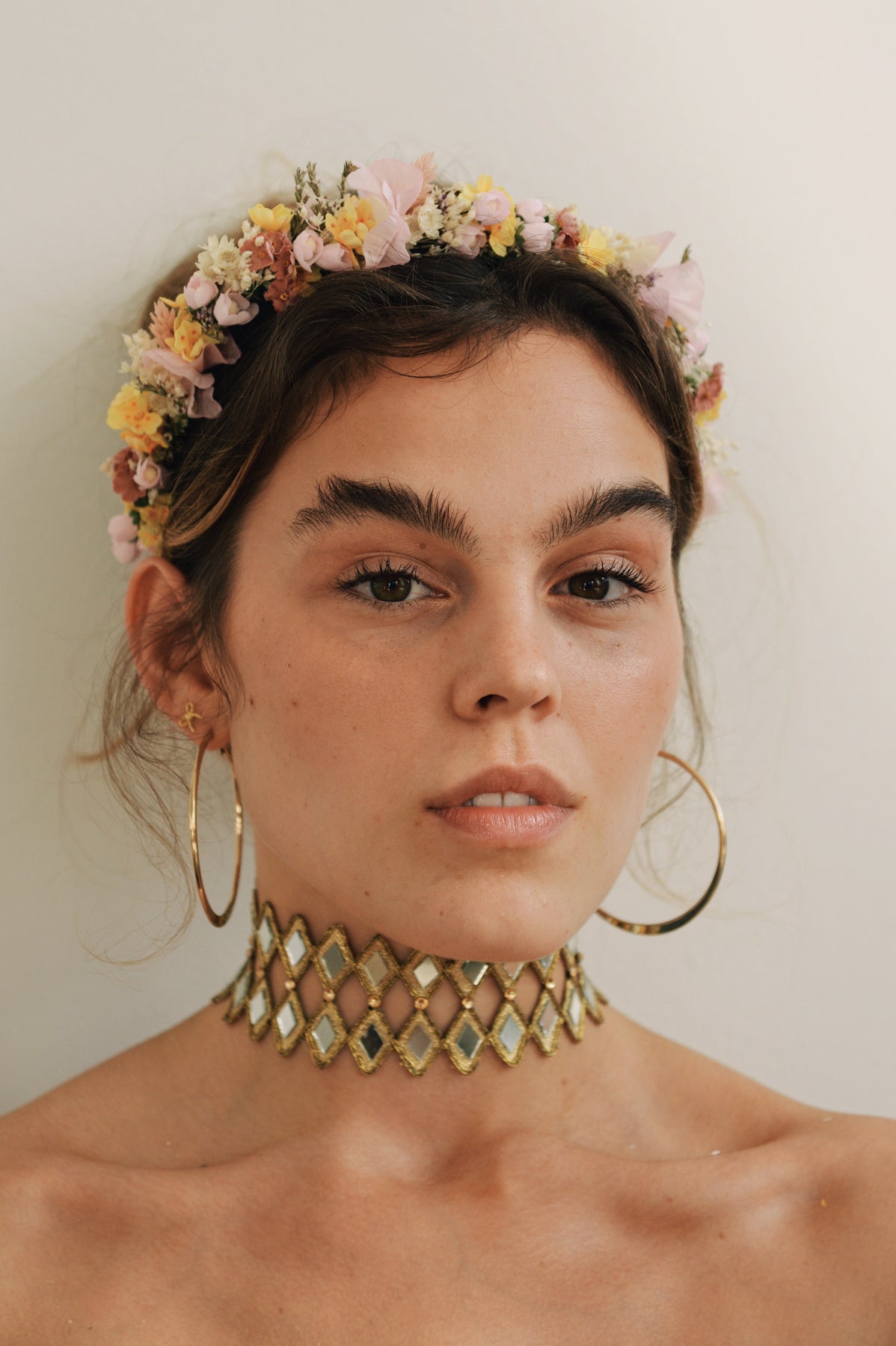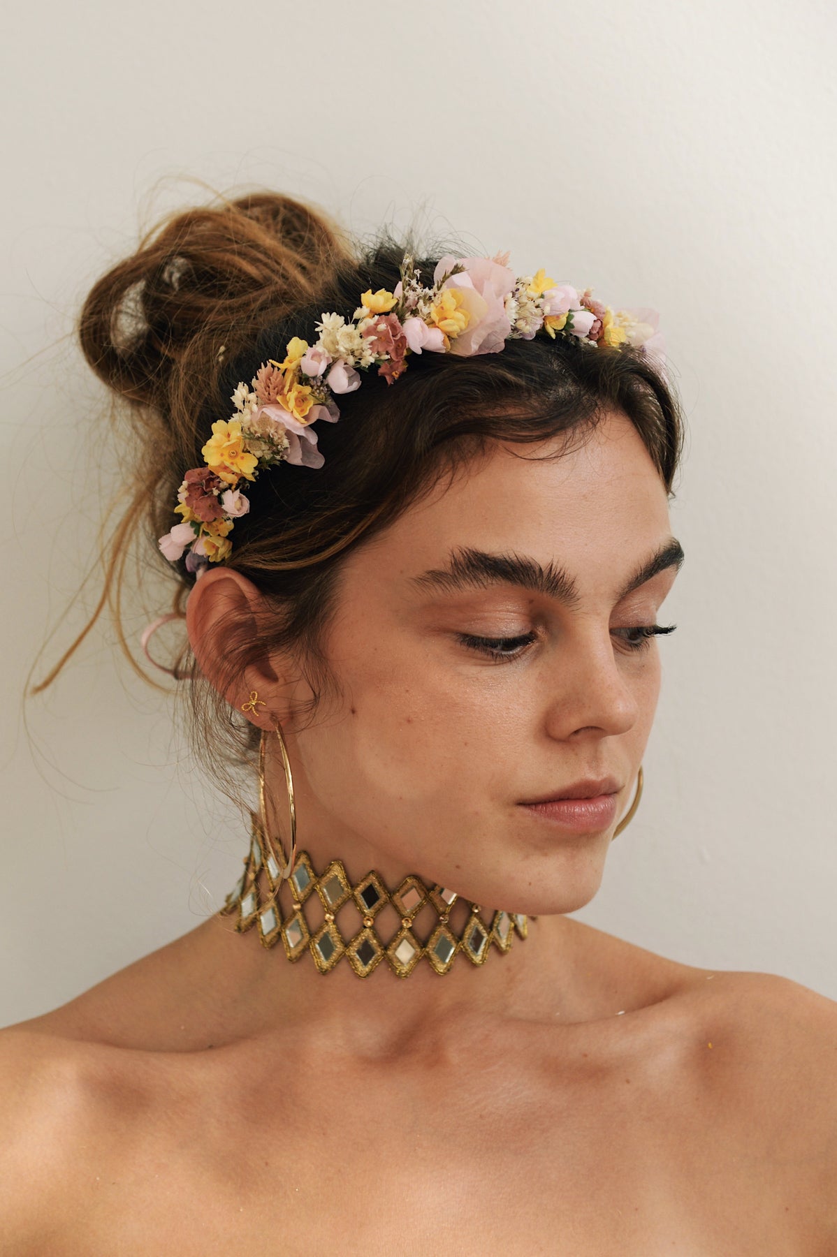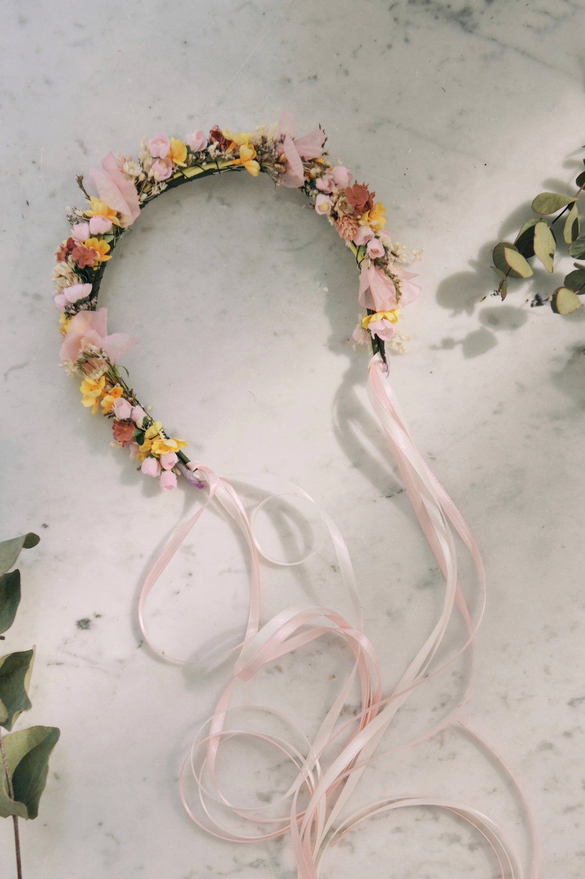 Rosalia ist eine romantische Blumenkrone für die Ewigkeit die niemals verblüht. Handgemacht in Wien aus Vintage Seidenblumen und getrockneten Real Flowers im Wiener Atelier von We Are Flowergirls.