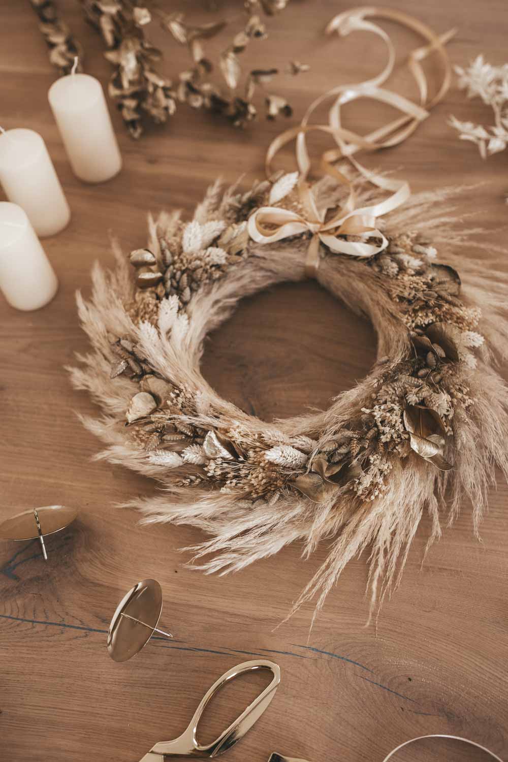 Binde gemeinsam mit den Flowergirls deinen eigenen Adventskranz aus Pampasgras und anderen Flower Elementen für die Ewigkeit. Lerne mit Dried Flowers kreativ zu werden und zaubere zugleich die perfekte Christmas Dekoration für dein Zuhause.