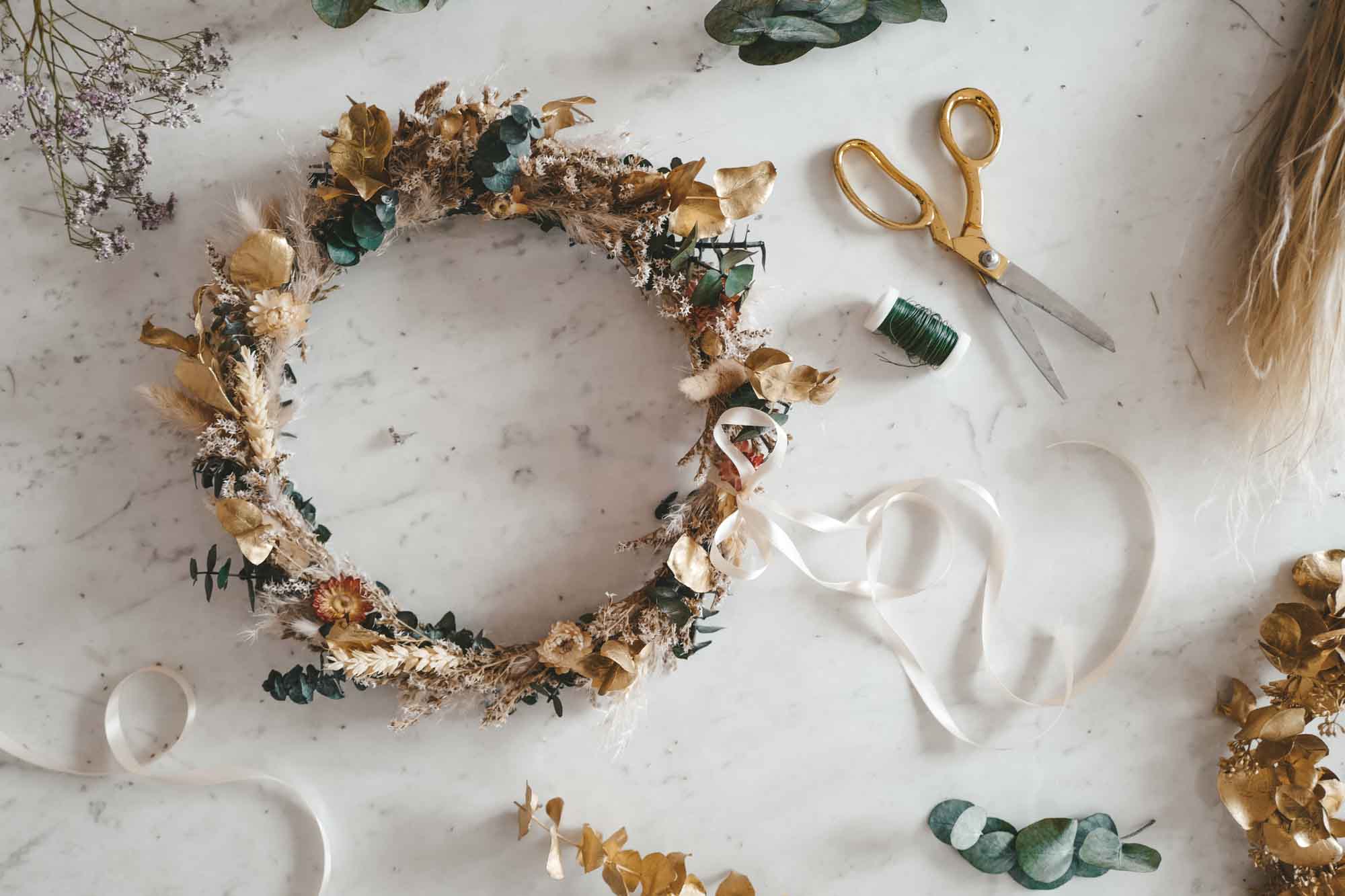 Kreiere deine eigene Everlasting Blumenkrone für’s Haar oder Dried Flower-Hoop für Zuhause.
