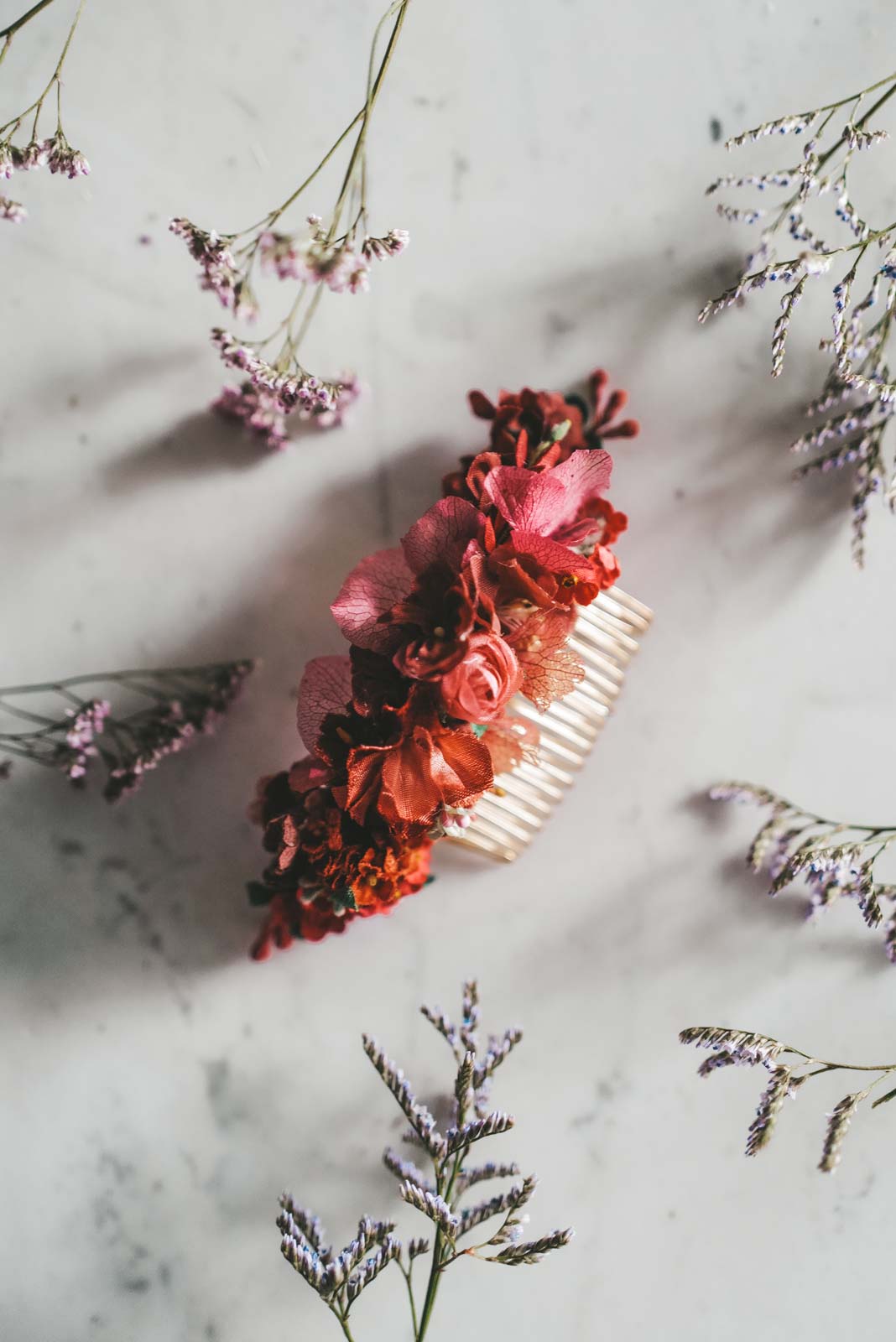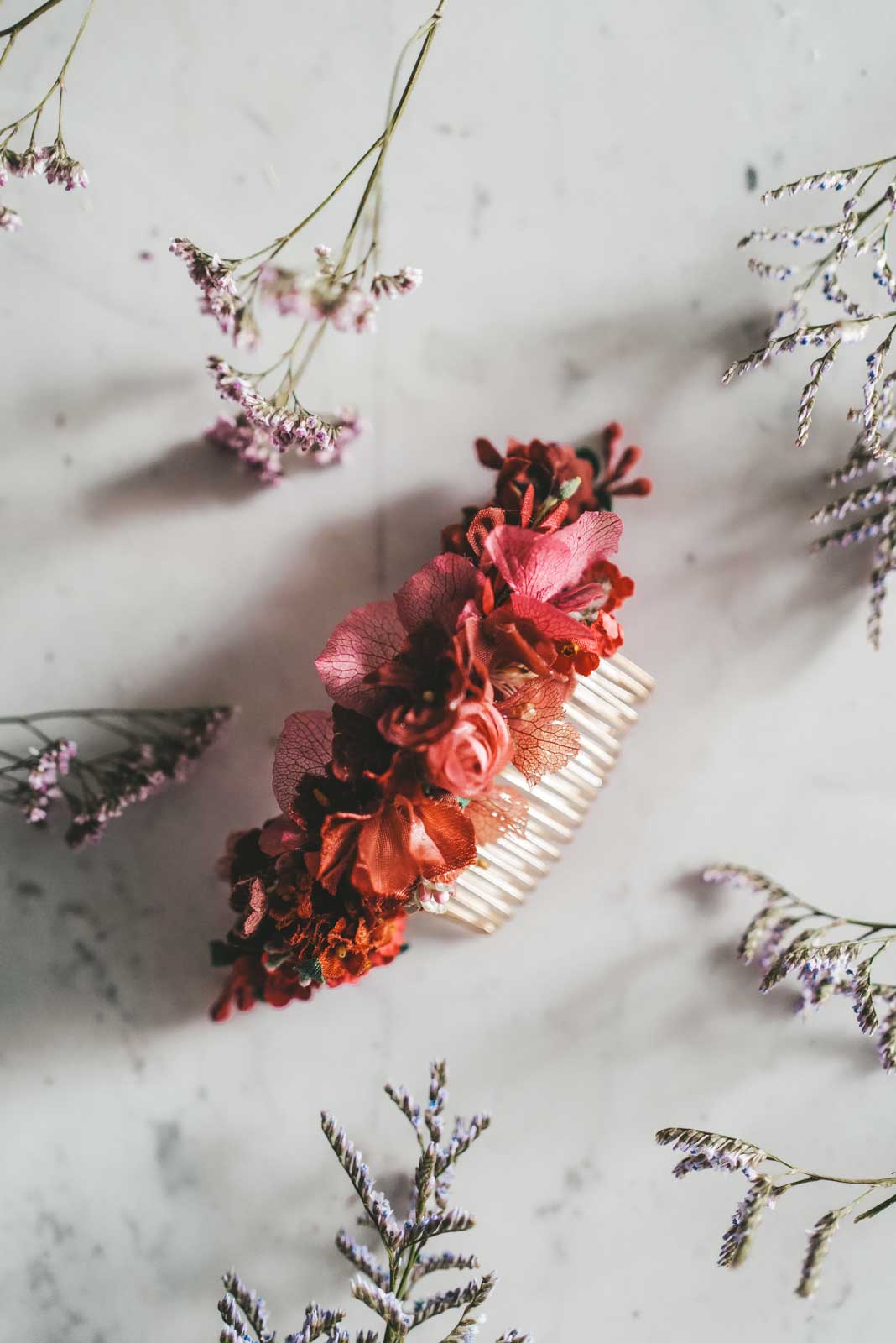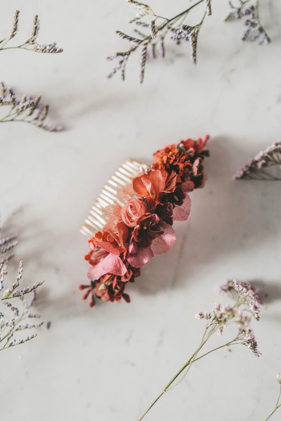Note that our designs are made from high quality materials. Each piece is handmade in our Vienna studio with rare flowers from the 50s to the 90s as well as dried flowers, beads and stones. Therefore, please treat your piece with love, do not leave the design in the sun for a long time and protect it from moisture. This way your unique piece will last a lifetime and outlast generations.