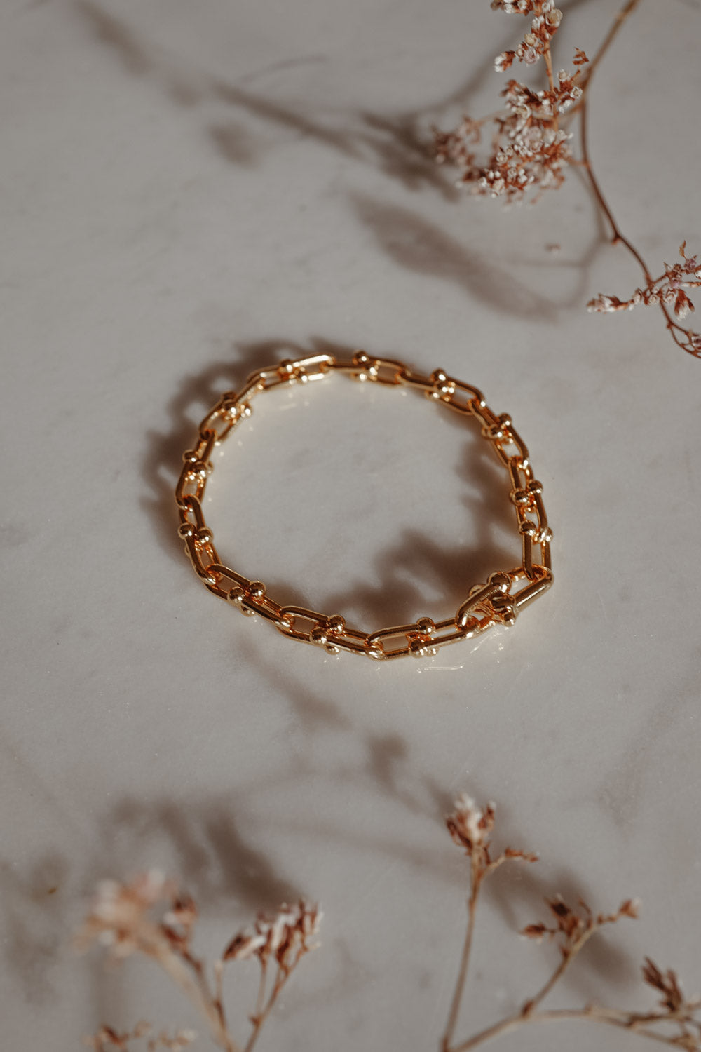 Bracelet Amy ist Teil unserer ersten Fine Jewelry Charity Collection. Das Glieder-Armband , vergoldet mit 18k Gold, spiegelt für uns den clean-eleganten parisian Chic wieder.