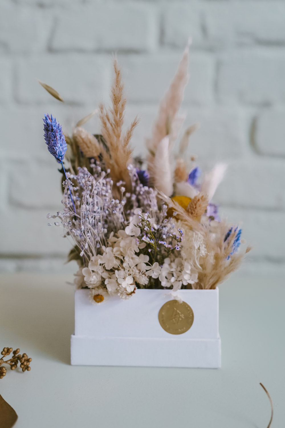 Unsere Dried Flower Boxen aus der »Flowers To Go Collection« sind das perfekte Mitbringsel zum Geburtstag, Geschenk zum Valentinstag oder Home-Deko für dein eigenes Zuhause. Unsere Blumenboxen werden von uns aus hochwertig getrockneten und konservierten Dried Flowers gefertigt und halten ein Leben lang. Sie sind die pflegeleichteste Dekoration für Zuhause und ein traumhaftes Geschenk wenn es mal einen Tick anders sein soll als ein klassischer Blumenstrauss.
